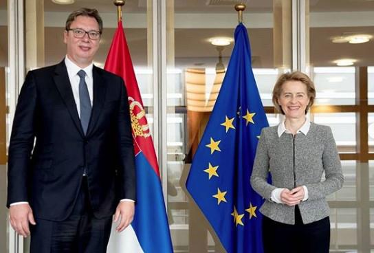 Predsednik Srbije Aleksandar Vučić započeo je zvaničnu posetu Briselu sastankom sa predsednicom Evropske komisije Ursulom fon der Lajen.