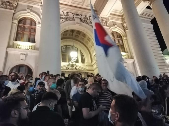 Oni su se prethodno okupili nezadovoljni najavom zbog uvođenja policijskog časa zbog sprečavanja širenja virusa korona, a nisu istakli ni jedan zahtev.