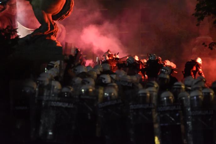 Podsetimo, večerašnji protest je eskalirao oko 21 sat kada je grupa ekstremista napala policajce i gađala ih klamenicama.