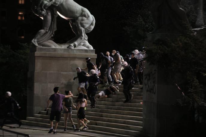 00.30 - Manje čarke između policije i demonstranata ispred Skupštine i u Pionirskom parku.