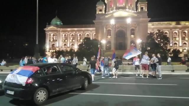 Više desetina građana okupilo se u centru Beograda, ispred Doma Narodne skupštine. Automobilima su blokirali ulicu i počeli da slave.