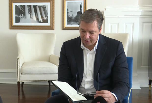 Predsednik Srbije Aleksandar Vučić pokazao je danas prvi put originalna dokumenta sporazuma potpisanog u Vašingtonu i istakao da je Srbija suštinski potpisala "razmenu pismena" sa SAD.