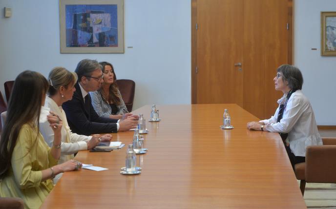 Predsednik Srbije Aleksandar Vučić sastao se danas sa ambasadorkom Ujedinjenog Kraljevstva Šan Makleod, koju je obavestio o razgovorima u Vašingtonu i toku dijaloga u Briselu, kao i o narednim koracima usmerenim ka daljem razvoju zemlje i regiona.