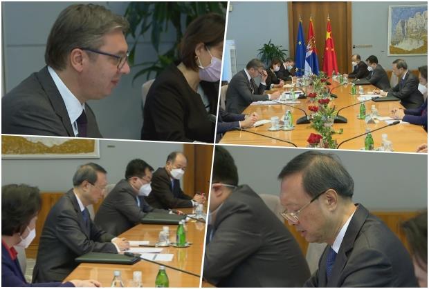 Predsednik Srbije Aleksandar Vučić sastao se danas sa članom Politbiroa Centralnog komiteta KP Kine i direktorom Kancelarije Centralne komisije za spoljne poslove Jangom Điječijem.