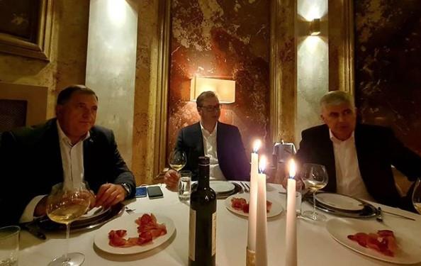 "Imao sam čast da ugostim drage prijatelje, Milorada Dodika i Dragana Čovića, da razgovaram o svim ključnim političkim pitanjima važnim za region, a posebno za BiH i Srbiju", poručio je Vučić na Instagram nalogu "Budućnost Srbije".