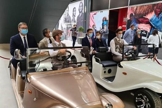 Predsednik je oduševljeno zagledao svaku radnju, enterijer same građevine, hodajući kroz njega, a onda je u jednom momentu, na iznenađenje novinara i svih prisutnih, seo u retro automobil i obilazak nastavio vozeći se kroz građevinu.
