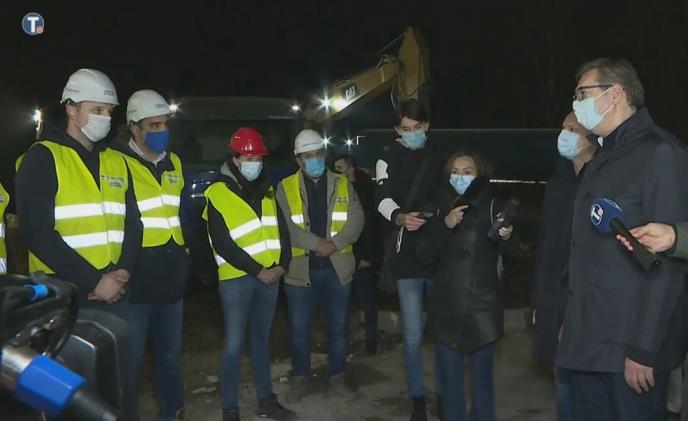 Vučić je stigao u Bajtajnicu u 22 sata i krenuo u obilazak gradilišta.