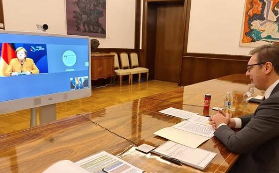Tema onlajn sastanka srpskog predsednika i nemačke kancelarke bila je borba protiv korona virusa i posledice pandemije, dijalog Beograda i Prištine, te odnosi dve zemlje i evropske integracije.