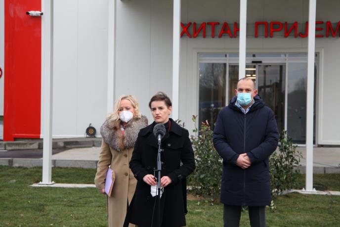 Premijerka je istakla da Srbija dobija novu bolnicu u najtežem mogućem trenutku - kada je danima ogroman broj novozaraženih, sa preko 800 pacijenata hospitalizovanih dnevno i kada je zdravstveni sistem kontinuiran već devet meseci.