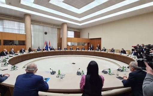 Sastanku prisustvuje i ministarka rudarstva i energetike Zorana Mihajlović, kao i direktor Kancelarije za Kosovo i Metohiju Petar Petković, te njegov prethodnik i imenovani ambasador Srbije u SAD Marko Đurić.