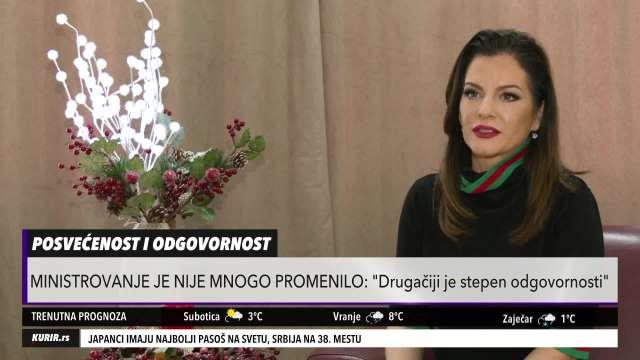 Kao poslanica i potpredsednica SNS, njen posao podrazumeva sate odsustva, boravak na terenu i komunikaciju sa ljudima, pa ne može da kaže da joj se život dosta promenio sa preuzimanjem ministarske funkcije i učešća u izvršnoj vlasti.