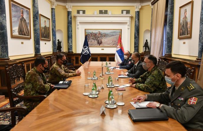 Ministar je podsetio da prema Rezoluciji SB UN 1244, KFOR predstavlja jedinu legitimnu oružanu formaciju na KiM i da se očekuje da obezbedi sigurno okruženje za sve etničke grupe u južnoj srpskoj pokrajini.