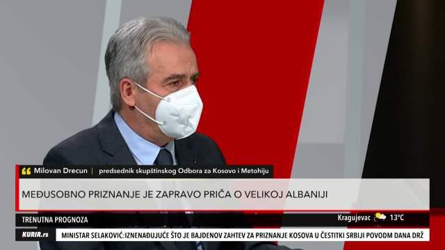 Milovan Drecun predsednik skupštinskog Odbora za Kosovo i Metohiju u emisiji "Redakcija" na Kurir televiziji naveo je da su Albanci na severu izveli specijalnu vojnu vežbu, koja ima za cilj razvijanje strategije za upad na severni deo Kosova i Metohije.