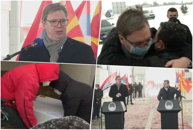 Njih dvojica sreli su se u 10 sati na prelazu Tabanovce po jakoj mećavi gde su se prvo srdačno pozdravili i izgrlili a Vučić je predajući donaciju 4.688 Fajzerovih vakcina rekao da je to za našu braću!