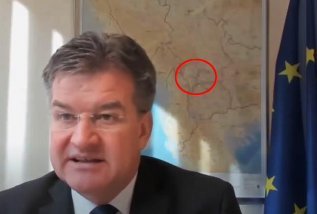 Tokom intervjua koji je specijalni izaslanik Evropske unije za dijalog Кosova i Srbije Miroslav Lajčak dao iz Brisela za portal "Evropski Zapadni Balkan" kamera je u pozadini zabeležila mapu na kojoj je Kosovo prikazano kao sastavni deo Srbije i bez administrativne linije prema Rezoluciji 1244 SB UN.