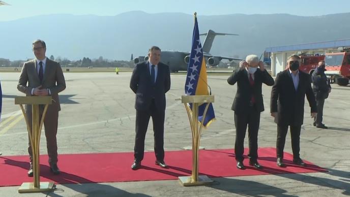 To je saopšteno na zajedničkoj pres konferenciji posle sastanka Vučića sa članovima Predsedništva BiH, kojima je uručio donaciju od 5.000, odnosno 10.000 vakcina protiv korona virusa.
