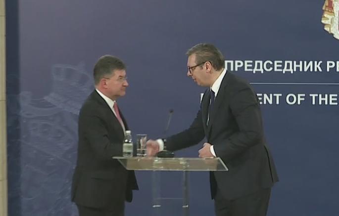 Predsednik Srbije Aleksandar Vučić i specijalni predstavnik EU za dijalog Beograda i Prištine Miroslav Lajčak ocenili su da je njihov današnji sastanak u Beogradu bio konstruktivan.