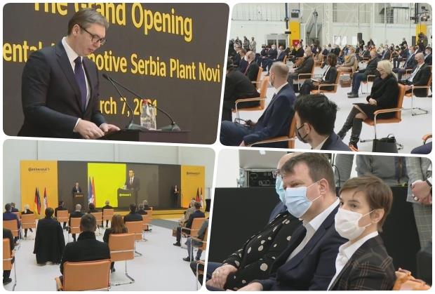 - Otvaranje fabrike Kontinental automotiv Srbija, jedne od najmoćnijih kompanija u Novom Sadu je veliki dan, i pokazuje koliko su u poslednje tri godine, napredovali i Novi Sad, Vojvodina i cela Srbija. Srbija bez Nemačke ne bi mogla da bude tako uspešna u ekonomiji kao što je sada i da bude među zemljama u Evropi koje najbrže rastu - poručio je predsednik Aleksandar Vučić.