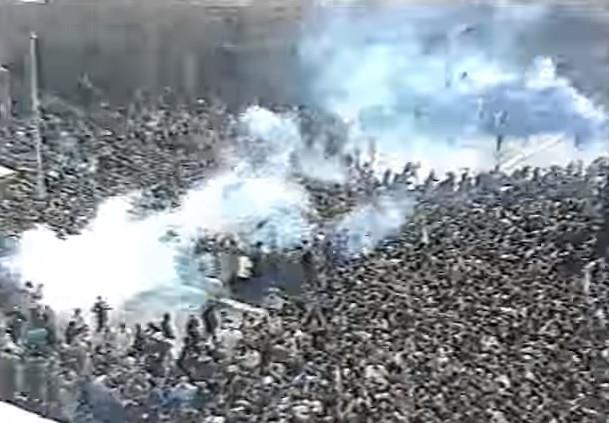 Dok su se sa terase Narodnog pozorišta lideri opozicije obraćali demonstrantima, policija je stezala obruč i pokušavala da rastera građane ogromnim količinama suzavca, vodenim topovima, gumenim mecima, konjicom. Demonstranti su pružali otpor, pa su ubrzo počeli višečasovni sukobi sa policijom. Na prebijanje demonstranta, lider SPO-a Vuk Drašković odgovorio je pozivom na "juriš" sa balkona pozorišta.
