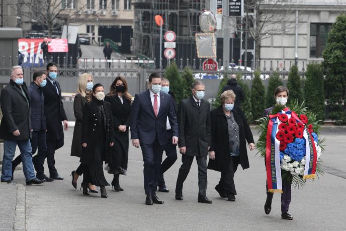 BEOGRAD - Predsednica Vlade Republike Srbije Ana Brnabić i članovi Vlade položili su venac na mestu na kom je izvršen atentat na nekadašnjeg predsednika Vlade Republike Srbije Zorana Đinđića.