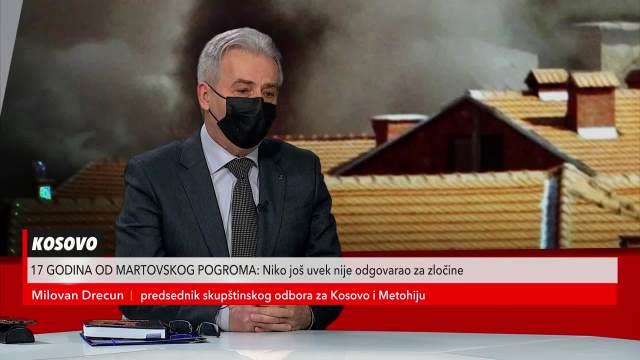 "Jedan pripadnik KFOR posle martovskog pogroma je rekao da je postojao pšlan da selokupno srpsko stanovništvo bude saterano i prebačeno u Gračanicu, a da onda do Merdera idu pod pratnjom i proteraju ih u centralnoj Srbiji", rekao je on i obelodanio da je američki komandant KFOR 17. marta bio na skijanju bez obzira što mu javljaju da sve gori.