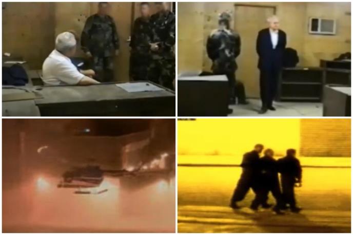 On svo vreme nije bio vezan što se vidi i na snimku. Milošević se čak i jednom trenutku nasmejao, a vidi se gomila američkih vojnika u uniformama kako ulaze neprestano u prostoriju u kojoj je bio Milošević. U jednom trenutku se vidi i vojni lekar koji je pregledao Miloševićča i raspitivao se koje lekove koristi i zašto služe. On spominje tablete za visoki pritisak, kao i glicerin u slučaju da mu pozli.