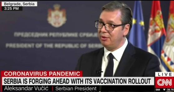 "Možete u Srbiji dobiti američke vakcine, evropske, ali i ruske i kineske. Možete da birate“, poručio je Vučić i voditelja CNN pozvao da ako želi da se vakciniše to može da uradi u Srbiji.