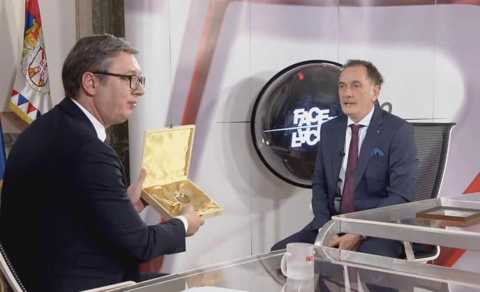 Predsednik Srbije Aleksandar Vučić u večerašnjoj emisiji kod Senada Hadžifejzovića iznenadio je voditelja poklonom, ali ni voditelj nije ostao dužan.
