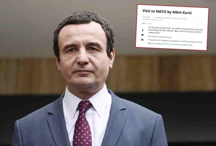 Sastanak je najavljen na zvaničnoj veb stranici NATO, ali upada u oči činjenica da Kurti nije najavljen kao premijer već kao "gospodin sa Kosova".