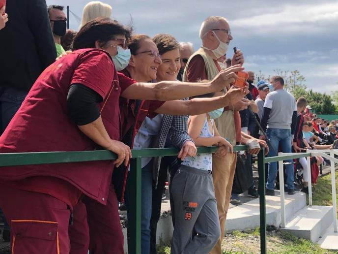 Dok je predsednik šutirao penale, premijerka se bukvalno "stopila" sa građanima i iza ograde posmatrala dešavanja na fudbalskom terenu.