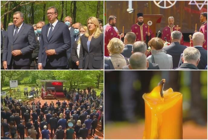 Nakon intoniranja himni Srbije i RS, održan je parastos za sve žrtve ustaškog logora Jasenovac. Zvaničnici su zatim položili vence na grobnom polju "Topole".