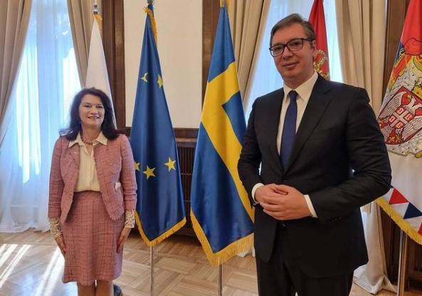 BEOGRAD - Predsednik Republike Srbije Aleksandar Vučić sastao se sa ministarkom spoljnih poslova Kraljevine Švedske An Linde.