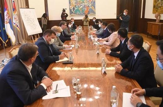 Predsednik Vučić danas je sa delegacijom kompanije Shandong Hi-Speed Group, na čelu sa Meng Janom i sa ambasadorkom NR Kine Čen Bo, razgovarao o tekućim projektima, kao i o potencijalima i planovima za buduću saradnju, saopštila je predsednikova Služba za saradnju s medijima.