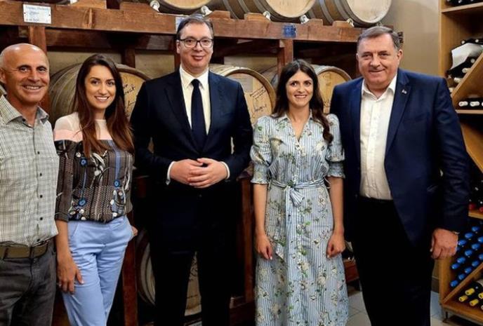 "Na putu do manastira Prohor Pčinjski, po ko zna koji put sam posetio fantastičnu vinariju @aleksic_vina u Vranju i dosađivao našim domaćinima. Onako uzgred, uz divnu pitu od koprive probali smo i mladi barikirani šardone, beli sovinjon i tamjaniku. Čestitam porodici Aleksić na svemu što su do sada uradili i želim im uspeh u budućnosti", napisao je predsednik Vučić.