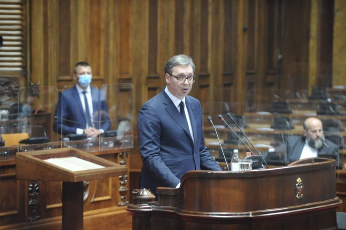 BEOGRAD - Predsednik Srbije Aleksandar Vučić rekao je danas u Skupštini da je Aljbin Kurti u Briselu izašao s genijalnim predlogom na koji nije mogao da se uzdrži a da ne bude neprijatan.