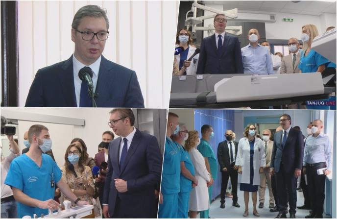 Predsednik dodaje da je to sada drugačija bolnica koja ima najbolji kvalitet usluge, sa opremom koja je u zdravstvu "mercedes i rols-rojs", kao da će sa tom opremom dnevno moći da se spase između dva i četiri života više na dnevnom nivou.