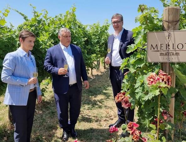 Posle sastanaka i izjava za medije, presednik i premijerka Srbije zajedno sa Orbanom obišli su sremske vinograde.