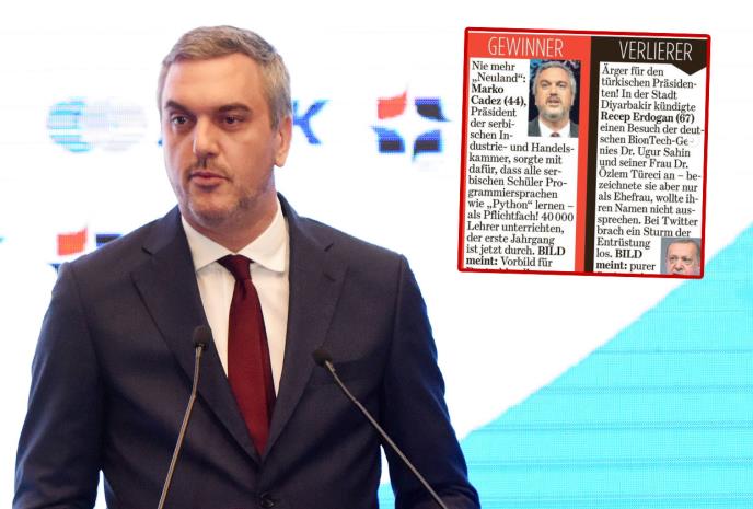 - Počastvovan sam što su me pomenuli u rubrici "Pobednik dana" najtiražnije nemačke dnevne novine. Hvala kompanijama iz Srbije, Vladi Srbije i pre svega premijerki Ani Brnabić - napisao je Čadež na svom Instagram profilu ne krijući ponos što je iz osnovnih škola širom Srbije izašlo 67.000 mladih ljudi spremnih za budućnost pošto su od 5. do 8. razreda imali predmet programiranje.