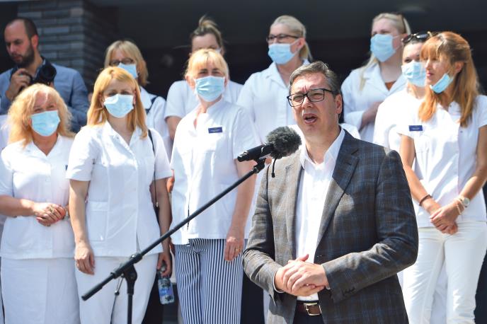 Predsednik je juče obišao novi dom zdravlja u Borči i tom prilikom istakao da ta nova zgrada pokazuje da može da se gradi i ulaže u zdravstvo, koje je jedno od ključnih stubova društva i preduslov za bolji životni standard, kao i da se trenutno radi na 12 opštih bolnica širom Srbije.