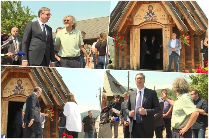 Vučić je nakon razgovora sa Kusturicom, ušao u Crkvu Svetog Save u Drvengradu.