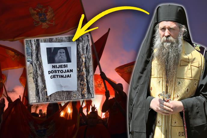 Marko Milačić je juče na Instagramu podelio plakate koji su osvanuli po Cetinju, a na kojima je slika novog mitropolita i natpis "Nisi dostojan Cetinja".