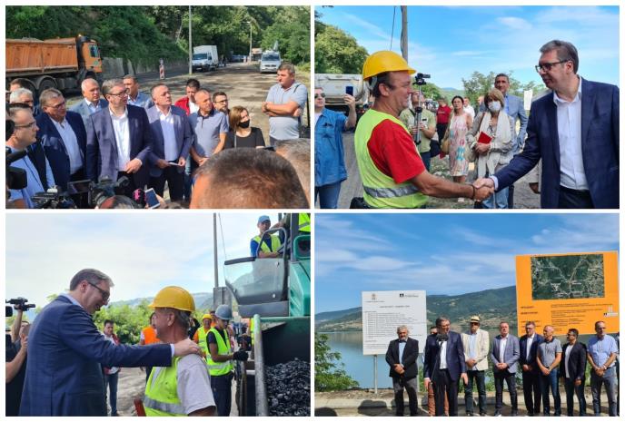 Sa njim su i ministar građevinarstva, saobraćaja i infrastrukture Tomislav Momirović i prvi čovek Puteva Srbije Zoran Drobnjak kojem je predsednik u toku obilaska rekao: Smeju ti se ljudi, Drobnjak! Sve rupa i zakrpa. Predsednik je komentarisao put kojim su došli i da od njega ima samo 5 kilometara da je dobar put.