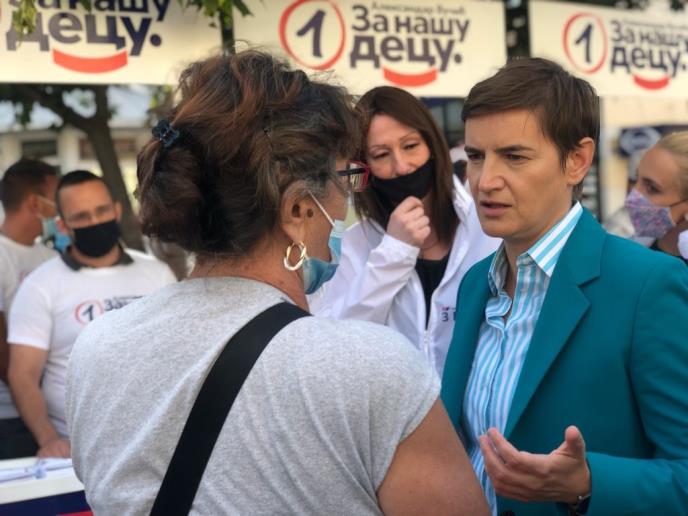 Brnabić je izrazila zadovoljstvo što je došla u Zemun i zahvalila se na energiji i podršci koju zemunci pružaju politici Aleksandra Vučića i Srpskoj naprednoj stranci.