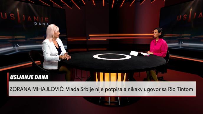 Veliki ekološki protest "Uranak za opstanak" zakazan je za subotu, a aktivisti koji u njemu učestvuju posebno dovode u pitanje aktivnosti kompanije Rio Tinto. Potpredsednica Vlade i ministarka za energetiku i rudarstva Zorana Mihajlović govori za Usijanje dana o referendumu koji je planiran kada je reč o Rio Tiintu, mineralnim resursima koje Srbija ima, solarnim panelima, energetskoj. efikasnosti, ali i o politici, izborima, svojim koalicionim partnerima socijalistima Urednica i voditeljka emisije je Silvija Slamnig.