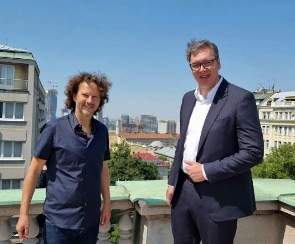 Predsednik je na Instagram nalogu "buducnostsrbijeav" objavio zajedničku fotografiju sa Bergmanom i objasnio značaj dolaska velikih zvezda svetske kinematografije u Beograd.