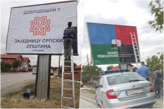 Kosovska policija je privela danas u policijsku stanicu trojicu Srba koji su u Gračanici postavljali bilbord "Dobro došli u Zajednicu srpskih opstina", saopštio je direktor Kancelarije za Kosovo i Metohiju Petar Petković.