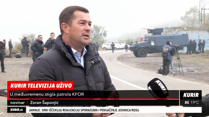 Jedna jedinica KFOR sa dugim cevima, džip i borna vozila nalaze se na dva kilometra od prelaza Jarinje, javlja reporter Kurir televizije.