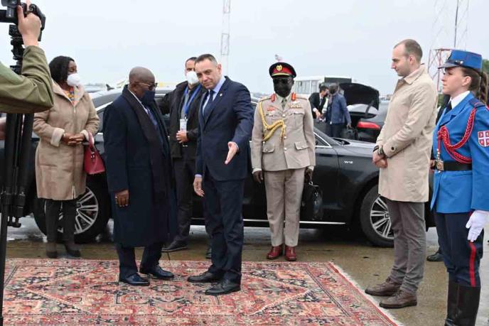 Ministar unutrašnjih poslova Republike Srbije Aleksandar Vulin uz visoke državne počasti ispratio je danas na Aerodromu „Nikola Tesla“ u Beogradu predsednika Republike Gane, Nana Ado Dankva Akufo-Adoa koji je u Beogradu prisustvovao obeležavanju 60 godina od prve konferencije Pokreta nesvrstanih.