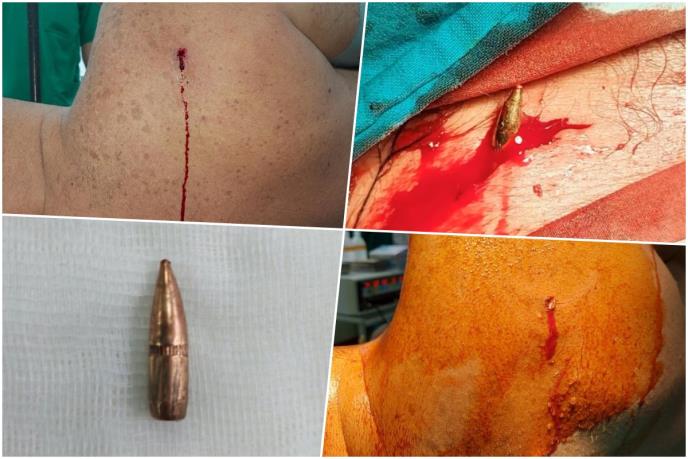 On je pogođen u leđa a metak mu je izašao na grudi, i hitno je prebačen u bolnicu.
