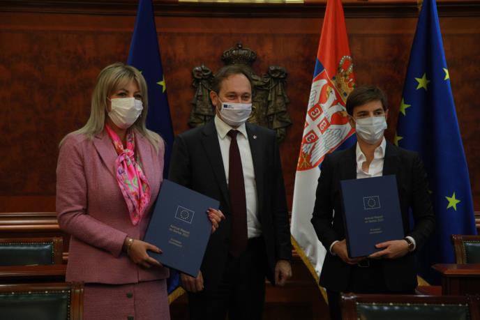 Šef Delegacije EU u Srbiji Emanuele Žofre predao je danas premijerki Ani Brnabić godišnji izveštaj Evropske komisije o napretku Srbije u procesu evrointegracija, koji je danas predstavljen u Strazburu. Uručivanju izveštaja u Vladi Srbije prisustvovala je i ministarka za evropske integracjie Jadranka Joksimović.